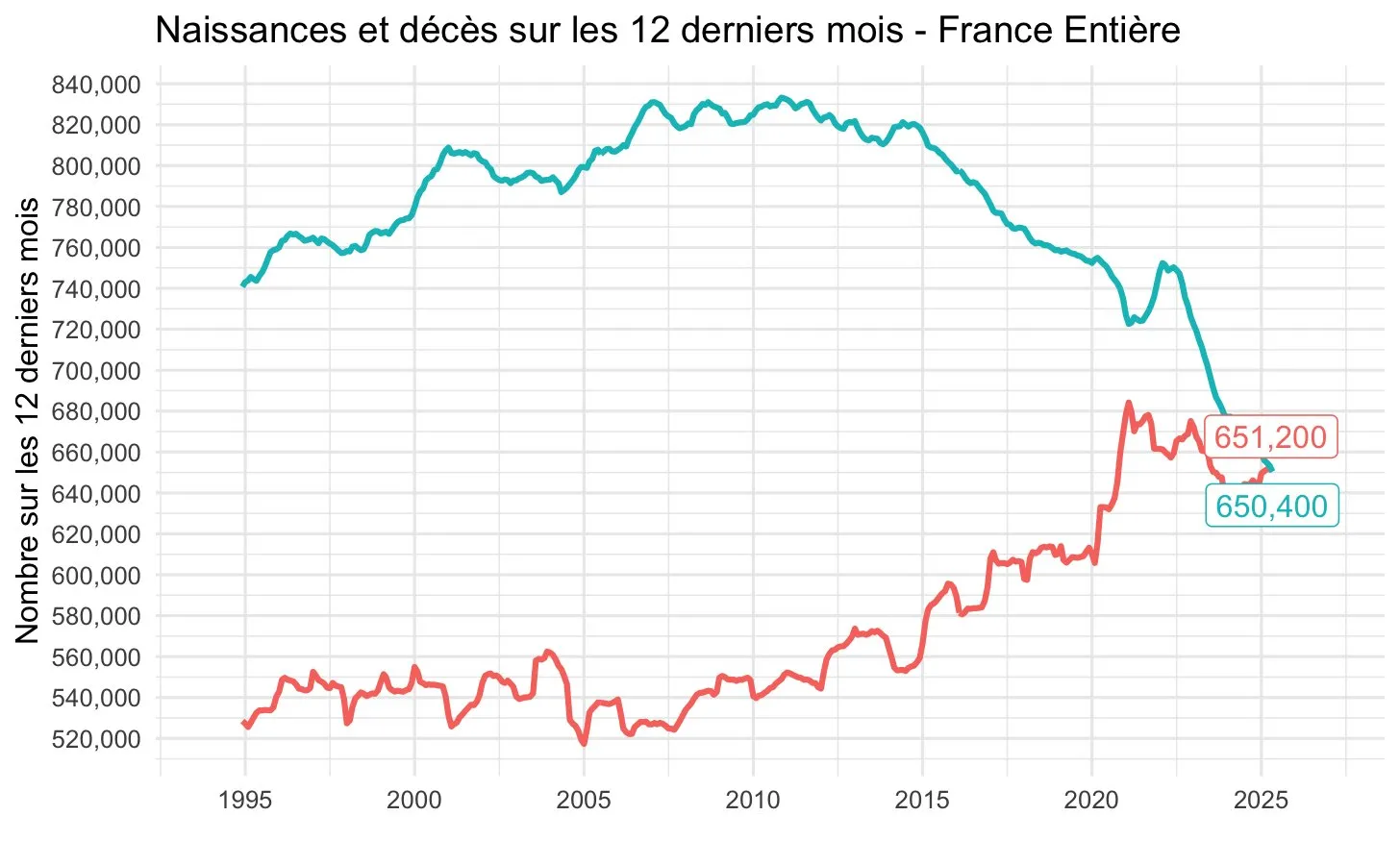 plus de décès que de naissancespour la première fois depuis la Seconde Guerre mondiale :651 200 décèscontre650 400 naissances(source : INSEE). - Les personnes de